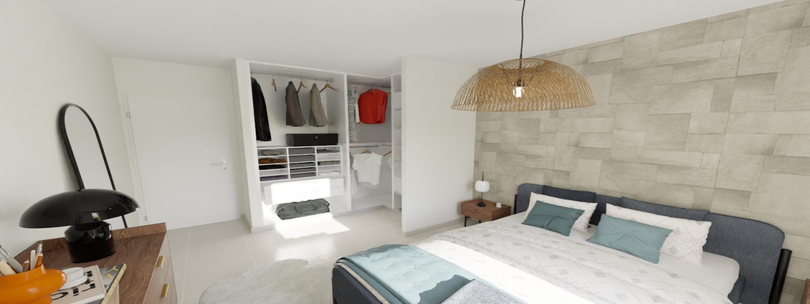 Le modèle Tahiti de 118 m² offre un agencement spacieux et moderne, parfait pour les familles recherchant confort et intimité. Avec quatre chambres, dont une suite parentale avec un grand dressing et une salle d’eau privée, cette maison est conçue pour offrir des espaces distincts à chaque membre de la famille.